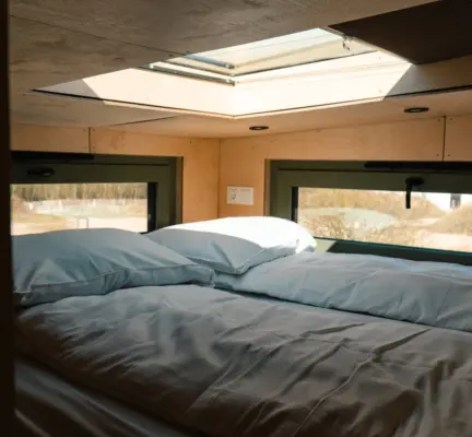 De duurzame accommodatie is stijlvol ingericht en heeft een vide met een comfortabel tweepersoonsbed en vaste trap. Beneden bevindt zich een zitgedeelte met daarin tevens een uitschuifbaar tweepersoons bed. Het charmante tiny house is voorzien van een moderne en compleet ingerichte keuken, eigen badkamer en toilet. De ruime veranda voor het huisje heeft een gezellig, overdekt zitje voor het hele gezin. Samen met de vele ramen zorgt dit voor een heerlijk buiten-binnen gevoel. Dit fijne onderkomen biedt de perfecte get-away voor maximaal vier personen.